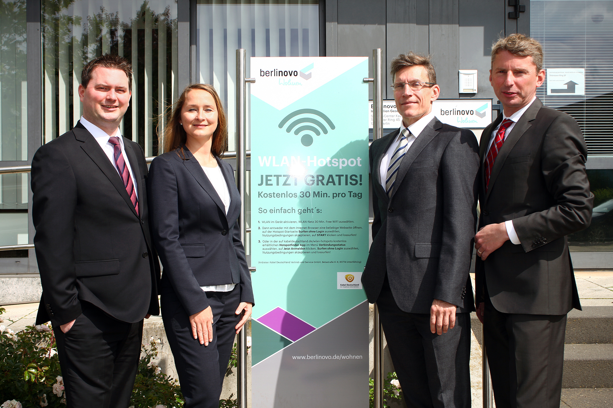 Die Berlinovo Immobilien Gesellschaft mbH aktiviert gemeinsam mit Kabel Deutschland 25 öffentliche WLAN-Hotspots in ihren Wohngebieten. Bereits seit Januar 2014 versorgt das Vodafone Unternehmen Kabel Deutschland die rund 13.000 berlinovo-Wohnungen mit modernen Multimediadiensten. Ab sofort können Mieter und Gäste in den berlinovo-Wohnanlagen auch unterwegs 30 Minuten pro Tag kostenfrei im Internet surfen. Dafür installierte der Netzbetreiber in den vergangenen Monaten die notwenigen Hotspots an ausgesuchten Hauswänden und Masten in den berlinovo-Beständen.