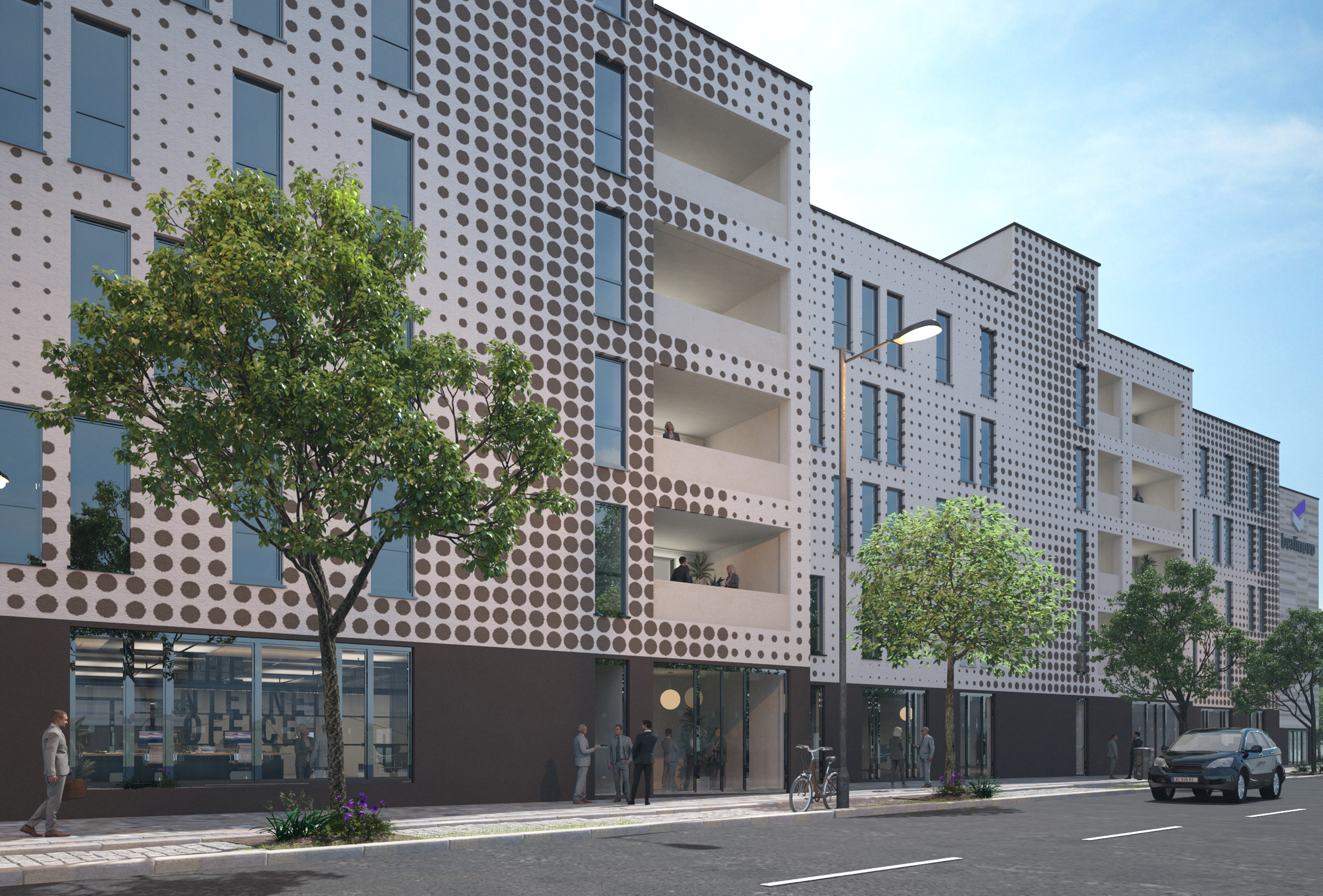 Mit einer attraktiven Architektur und einem interessanten Nutzungsmix schaffen wir an diesem Standort einen weiteren urbanen Lebensraum. Damit leistet die berlinovo einen weiteren wichtigen Beitrag für die wachsende Stadt: zeitgemäßer Wohnkomfort bei gleichzeitig moderaten Mieten sowie moderne Büroflächen mit hoher Flächeneffizienz!