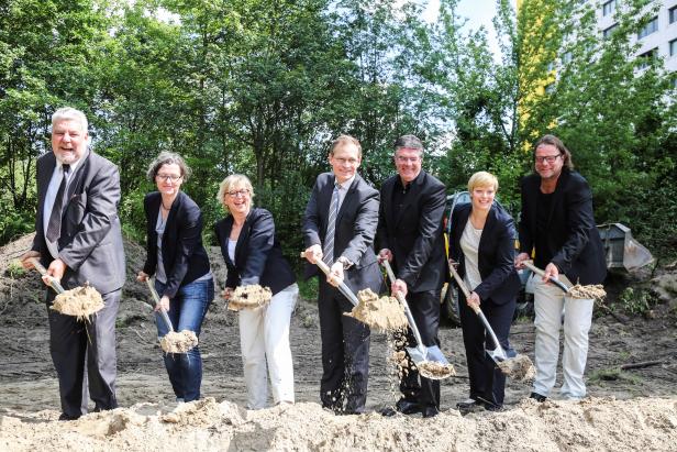 Ein Bild vom ersten Spatenstich bieten wir Ihnen unter dem nachfolgenden Link zum Download an, Teilnehmer sind von links nach recht: Staatssekretär Klaus Feiler, Senatsverwaltung für Finanzen, Birgit Monteiro, Bezirksbürgermeisterin Lichtenberg, Silke Andresen-Kienz, kaufmännische Geschäftsführerin der berlinovo, Michael Müller, Regierender Bürgermeister von Berlin, Roland J. Stauber, Sprecher der Geschäftsführung der berlinovo, Marlies Neumann, Studentin, Jan Müller Seidler, Architekt (IHT).