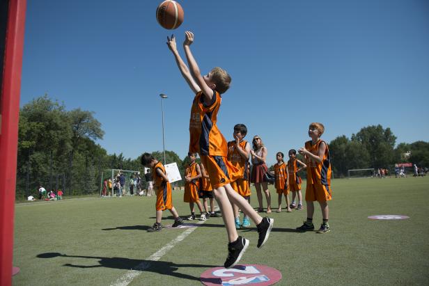 In acht spannenden Disziplinen, vom Basketballwurf bis zum Spinnennetz, traten die Berliner Schüler gemeinsam mit den geflüchteten Kindern zum friedlichen Wettkampf an und warben dabei für Toleranz und Völkerverständigung.